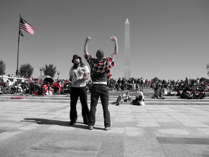 On Saturday, Tim, Cristina and I rolled up to the One Nation Working Together rally in Washington D.C. Our friend Paul had hosted a raucous party the night before, so we were a little weary. Apparently a long-haired Indian who plays with Thievery Corporation had been skulking around the party before we got there, which led a number of guests to infer that I played with Thievery Corporation.
