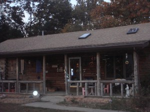 Middlebury, Indiana is a sleepy town in the woodlands of Northern Indiana, literally minutes from the border with Michigan, which allowed me to listen to an excellent Michigan NPR affiliate for several hours. It’s the kind of place where people sell bundles of wood, and giant insects smash into your windshield. It’s also the home of Sue, one of my favorite people from Biloxi days. She lives in a dope cabin.