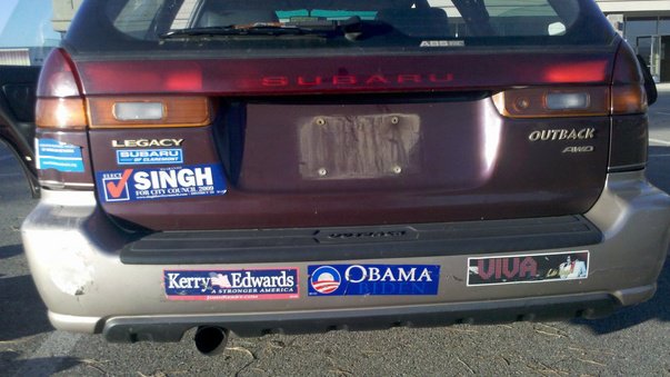 Turns out three strip mall blocks are quite a walk. Not only was our car busted, but the windows were stuck in the down position, so we had to lug our stuff with us so it wouldn’t get stolen. Tired, sweaty and worried, we arrived at Randy’s. Randy was certain, after our descriptions, that we had a blown gasket. He calculated that between parts and labor, that would run us about $1300. Having decided at the outset that anything north of $500 would probably lead to Suby’s demise, I asked if he knew any mechanic that would consider buying the car for the parts. He could only think of one, and got us his card. It was Rick.