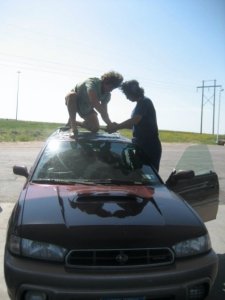 During the Biloxi days of 2005-2006, Suby went through its time of troubles.  Some hick smashed into us in Waveland, causing substantial body damage, and jacking up my insurance rates. The alarm system got finicky, getting loud, angry and hard to turn off whenever someone opened the doors of the car out of order.  This caused me and my equally raggedy looking buddy Guillermo problems in Kentucky, where people kept thinking we were trying to steal our own car.   Suby’s tendency to overheat badly in traffic was starting to worsen- this required blasting hot air through the vents, which was incredibly unpleasant during the summer, when rolling down the windows only made things worse.  For all you car half-wonks out there, blasting the AC does NOT solve the problem.  But these two years were also some of the best bonding I ever did with Suby.  I found that a perfectly good mattress could spread out in the trunk when you folded down the backseat.  This meant on long solo trips I could find $5 overnight parking in some downtown garage, and curl up to sleep in the back of the car after the night’s adventures.