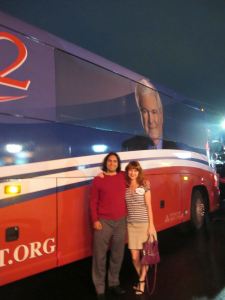 With “Don’t Stop Believing” blaring, Sarah and Jack Martin sung and swayed with the crowd, awaiting Newt’s appearance. They love Gingrich’s experience.  He’s been around since I was in grade school, Sarah quipped. Suddenly, Jack took on a mock-serious expression.