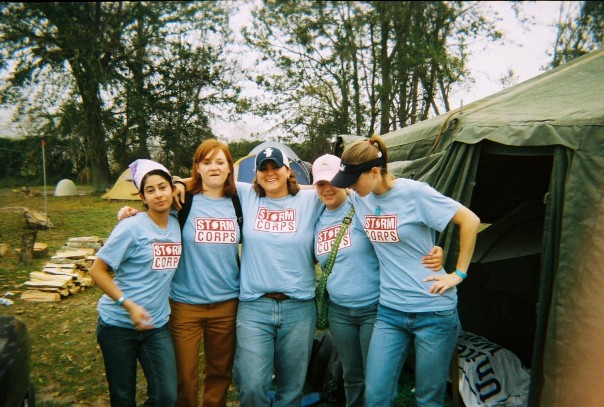 StormCorps was an MTV volunteer group thing wherein the channel recruited 150 teenagers, who were really, REALLY excited about helping out with the hurricane relief, carted them down to a real live volunteer camp followed by dozens of cameras, and made a television show out of it. MTV wins because it’s a little reality television for good. Hands On Network wins because MTV gives them a little bit of money beyond housing costs and a little publicity to boot. Stipends and college groups aside, the arrival of StormCorps officially began the era of corporate sponsorship at camp. The first day that StormCorps started, MTV threw everyone a little barbeque across Pass Road. Food was food, and for the most part we were all amused by the baby blue shirts and the fancy catering that came in on trucks. Then the corporate leader of the project stood up on a chair next to one of the trucks and started giving a speech on how great this was all going to be, partnerships and working together. And then he launched into this whole deal on FedEx and their history of responding to disasters and how as an additional partner, we were fortunate to have them doing what they had done. A lone voice interrupted from my right.