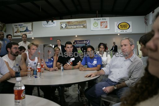 Prior to this moment, Erin had explained that Bush was probably going to give us 10 minutes of time at most. He just wanted some pictures with some of the volunteers rebuilding Mississippi and be on his way. We were fine with this, but definitively unprepared for what would ensue.