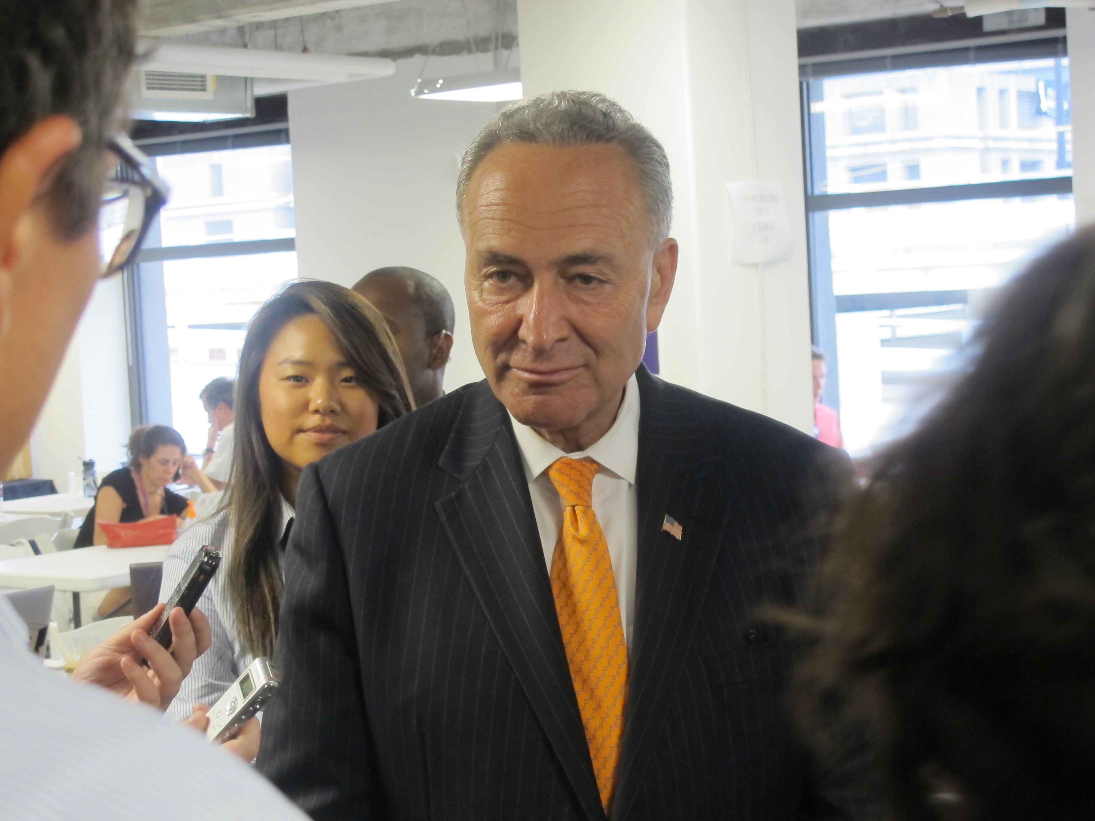 Senator Schumer also called for Duke Energy and its CEO, Jim Rodgers, to leave the American Legislative Exchange Council (ALEC). Rodgers has personally donated $100,000 to the Democratic National Convention, and Duke Energy has lent considerable resources to the Convention Host Committee. Schumer also voiced his support for the Employment Non-Discrimination Act, which would prevent employers from discriminating on the basis of sexual orientation or gender identity, lamenting the disappearance of moderate Republicans who once supported such legislation.