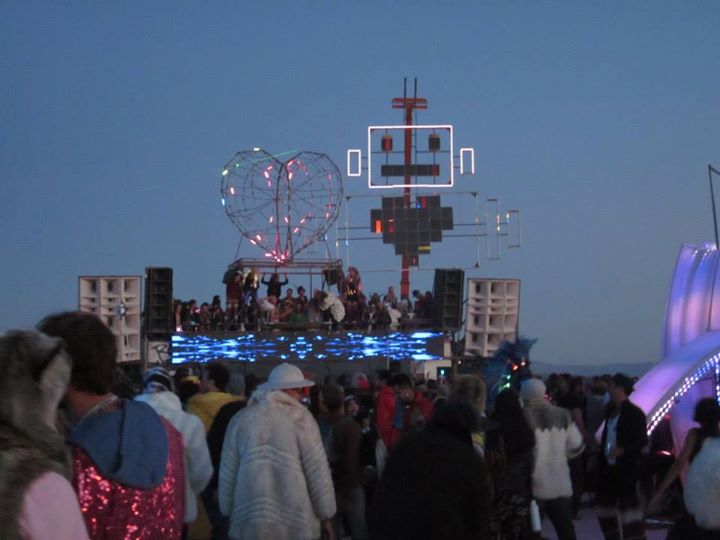 There is actually a decent amount of live music at Burning Man if you know where to find it and are in a decent of state to bike yourself across the desert for it. Live music is something a healthy percentage of Burners crave more of- not everyone can live of electronic for a week straight. I had made plans to catch Crossroads, a Chicago and Bay Area based funk outfit, and finally caught them on their last night, when they played more than four hours of covers, ending with “With a Little Help From My Friends.” Then the neighboring camp made everyone grilled cheeses.