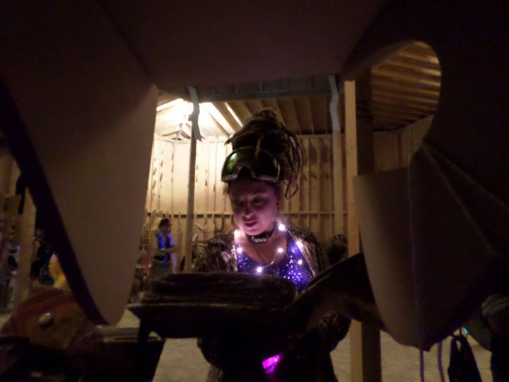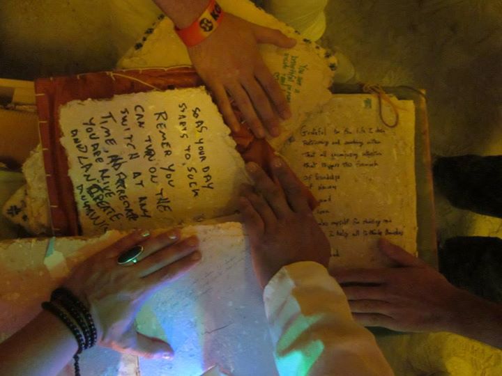 During multiple journeys we found solace in the Library, which housed hundreds of manuscripts filled by Burners over the course of the week, offering wisdom, deep stories, and hit or miss humor. Most of all, it served as a place to quietly ponder, right in the middle of the madness, and without the intensity of the Temple. Anna does a reading here.