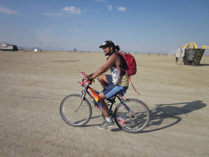 Me and my trusty bike. BM is several miles across in each direction, so bikes are pretty necessary. Mine was decorated with flags of my favorite country as a nod to the “Caravansary.”
