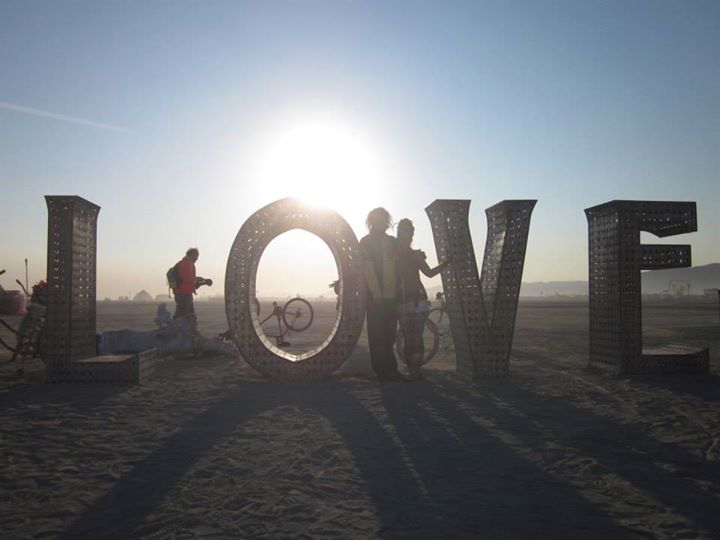 The installation where we took our engagement photo, about five hours after the magic moment. You’ll notice little holes in the letters- those are shaped like birds, and a friendly driver we bumped into on our way to the bus station the final morning gave us a bunch of them when he heard our story. We’re keeping two for ourselves, but hope to hand out the rest to awesome couples over the next year. And yes, that’s the sun behind us. “Is that the sun?” was a comically recurrent question that comes up at the end of all-nighters in the desert.